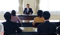 | 4月20日(金)上越教育大学において、みちトークランチを開催しました。31万冊の書籍がある図書館や情報基盤センター、就職支援室などを見学後、「地域における上越教育大学」をテーマに、上越教育大学学長の渡邉隆さんから講演をいただきました。地域に根ざした大学、出前講座による地域貢献など、最高のシステムを持ち、地域に密着している大学について学びました。 |